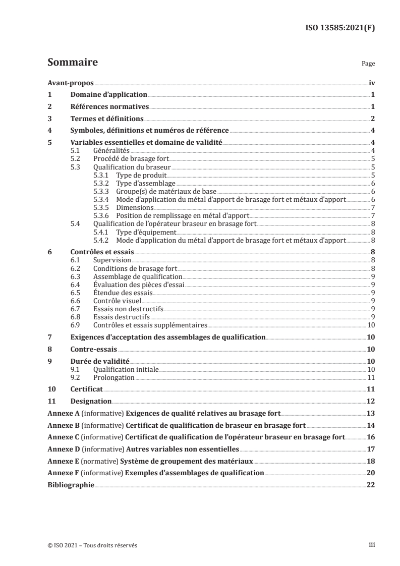 ISO 13585:2021 - Brasage fort -- Essais de qualification des braseurs et des opérateurs braseurs en brasage fort