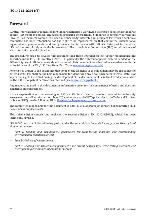 Cette troisième édition annule et remplace la deuxième édition (ISO 14242-1:2012), qui a fait l’objet