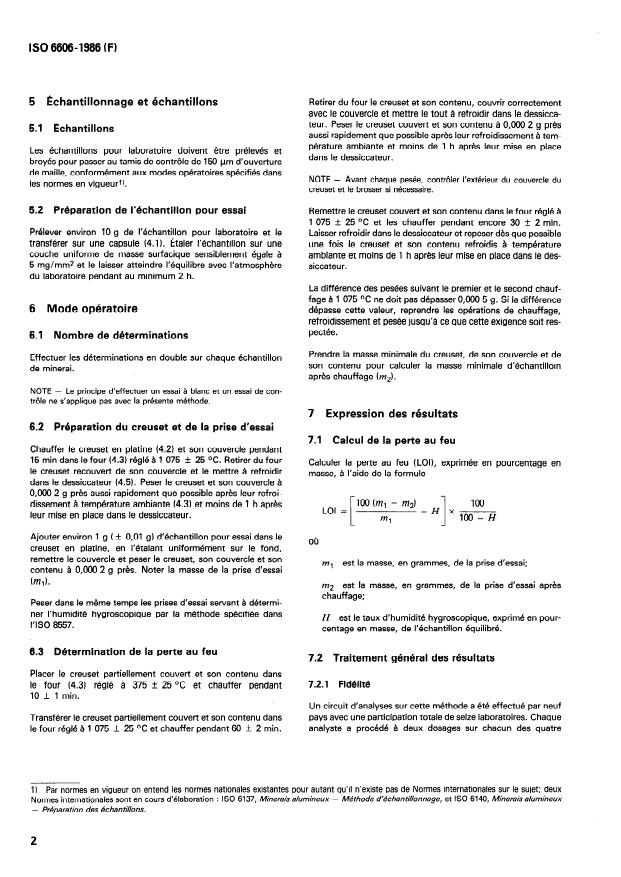 ISO 6606:1986 - Minerais alumineux -- Détermination de la perte de masse a 1 075 degrés C -- Méthode gravimétrique