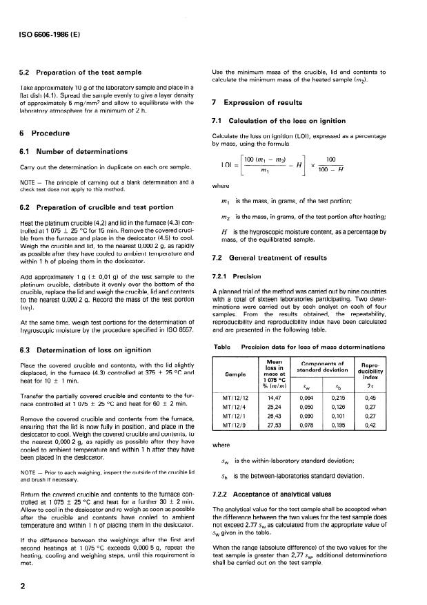 moisture. At higher temperatures the loss of mass is due largely second furnace at 1 075 + 25 OC and heating to constant
