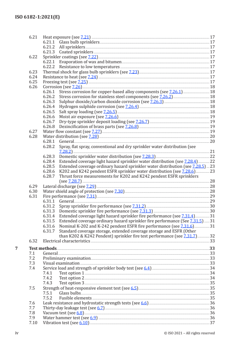 This summary helps stakeholders quickly find relevant technical requirements and test methods in ISO 6182-1:2021 when specifying, testing or certifying sprinklers for water-based fire protection systems.