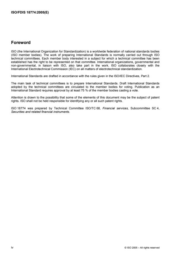 ISO 18774 was prepared by Technical Committee ISO/TC 68, Financial services, Subcommittee SC 4,
