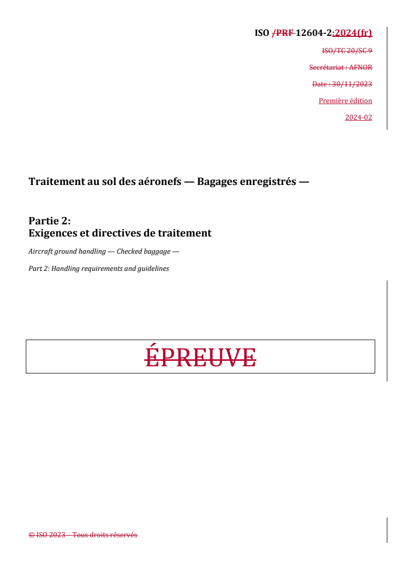 REDLINE ISO 12604-2:2024 - Traitement au sol des aéronefs — Bagages enregistrés — Partie 2: Exigences et directives de traitement Released:3/5/2024