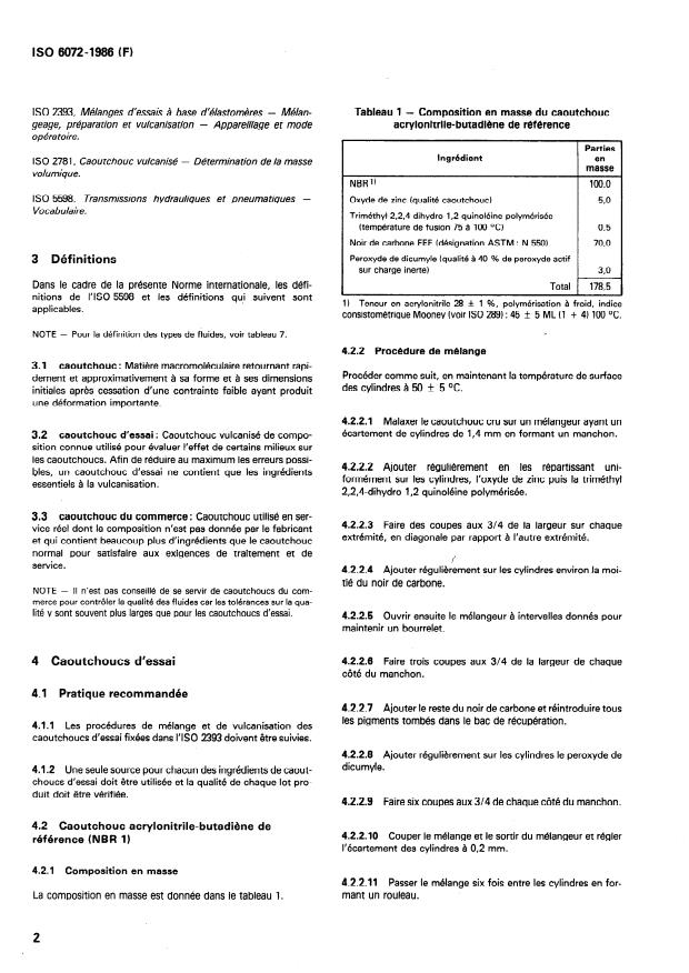ISO 6072:1986 - Transmissions hydrauliques -- Compatibilité des fluides avec les caoutchoucs