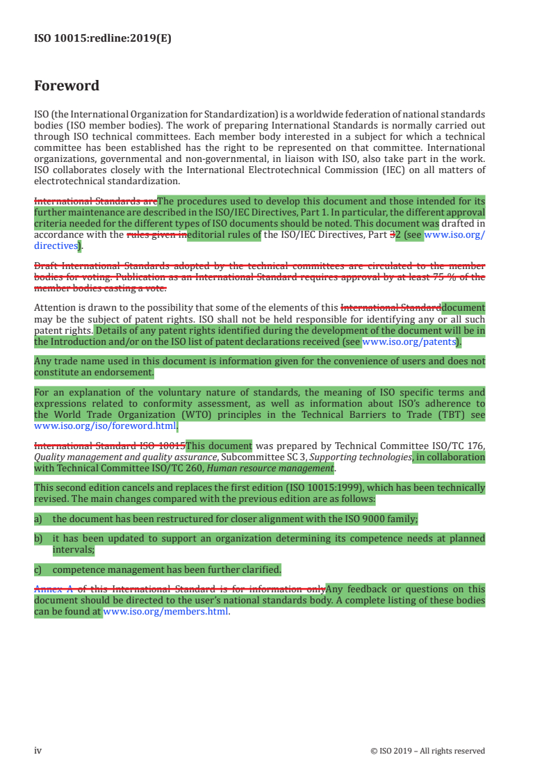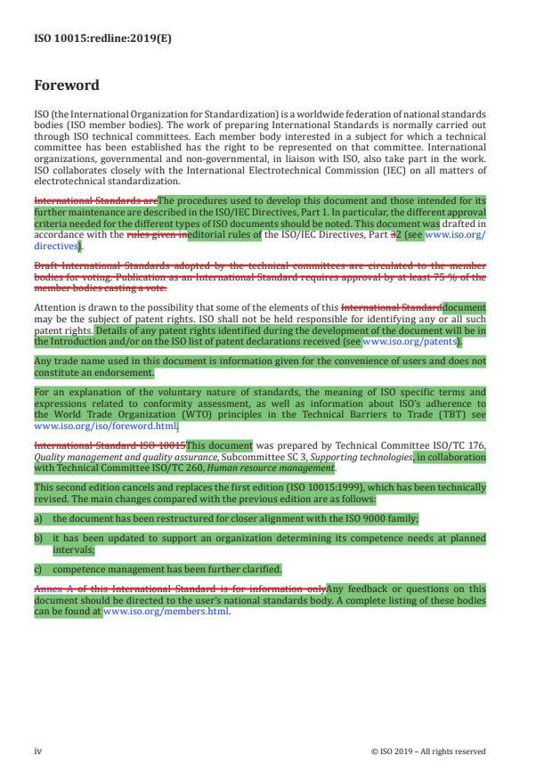 REDLINE ISO 10015:2019 - Quality management -- Guidelines for competence management and people development