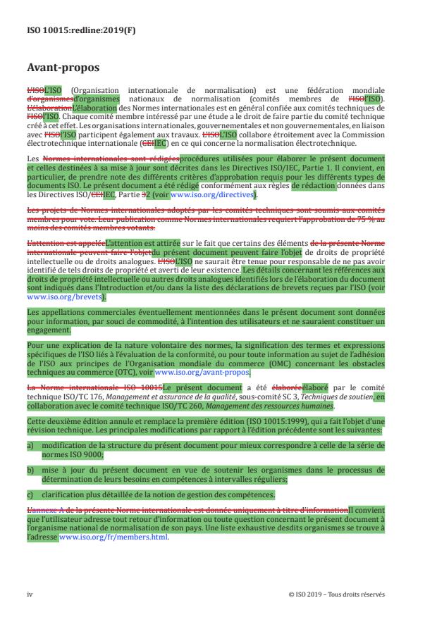REDLINE ISO 10015:2019 - Management de la qualité — Lignes directrices pour la gestion des compétences et le développement des personnes Released:12/17/2019