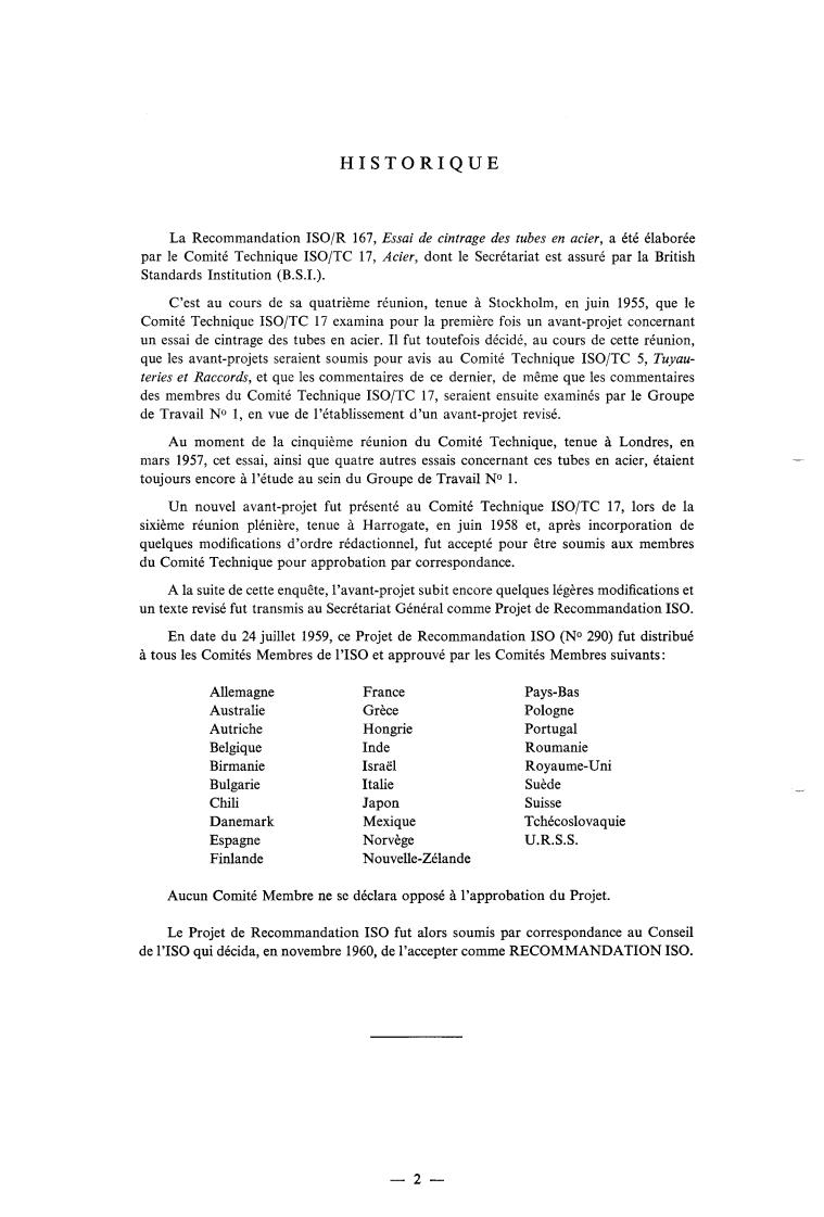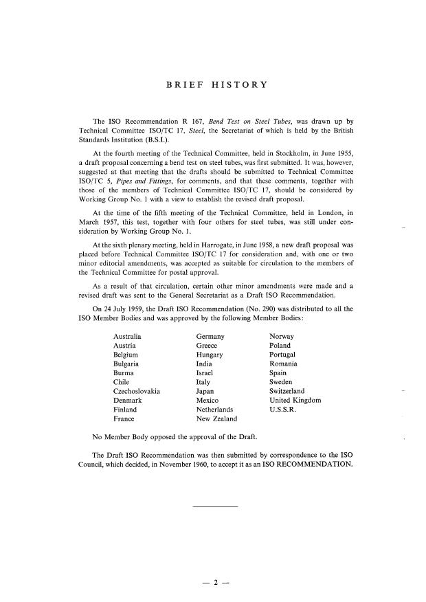 The IS0 Recommendation R 167, Bend Test on Steel Tubes, was drawn up by