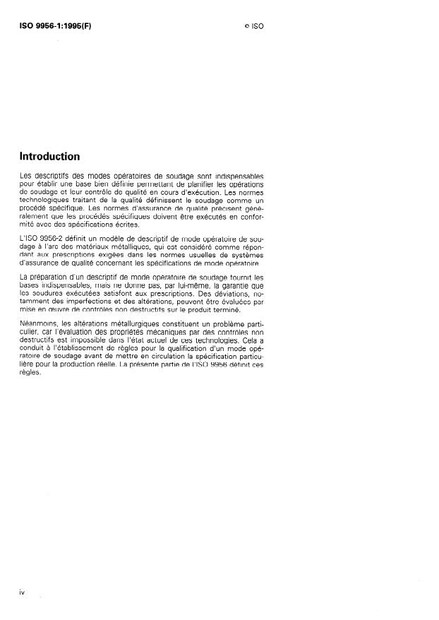 ISO 9956-1:1995 - Descriptif et qualification d'un mode opératoire de soudage pour les matériaux métalliques
