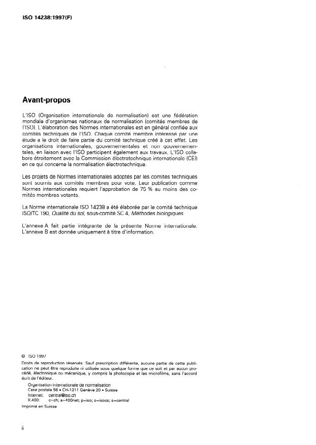 ISO 14238:1997 is a standard published by the International Organization for Standardization (ISO). Its full title is "Soil quality — Biological methods — Determination of nitrogen mineralization and nitrification in soils and the influence of chemicals on these processes". This standard covers: Specifies laboratory procedures for measuring the mineralization and nitrification of nitrogen by the soil microflora. Gives a simple procedure for investigation of the potential toxicity of chemicals to N-mineralization in soils.