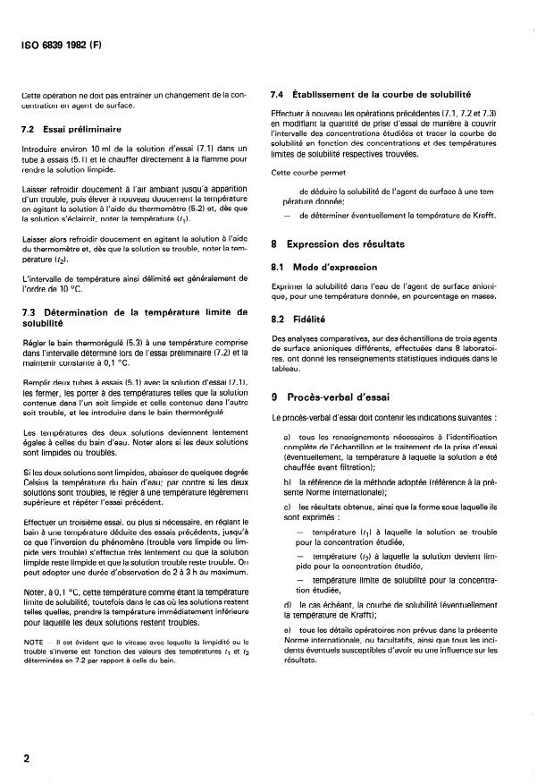 Keywords: ISO 6839:1982, anionic surface active agents, solubility in water, solubility curve, Krafft temperature, surfactants, detergents, sodium laurate, sodium lauryl sulfate.
