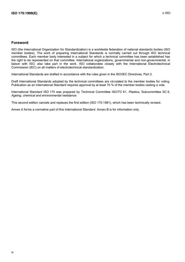 ISO 175:1999 - Plastics -- Methods of test for the determination of the effects of immersion in liquid chemicals