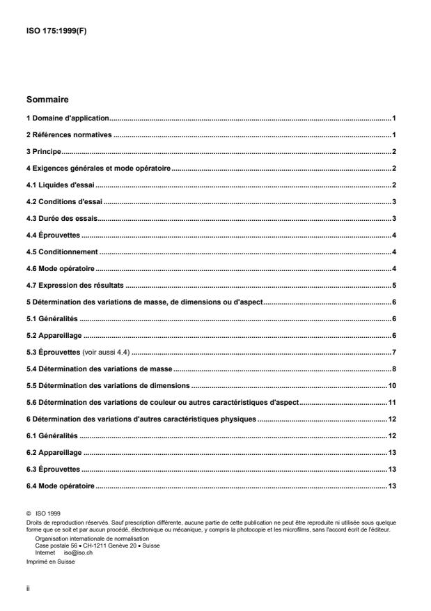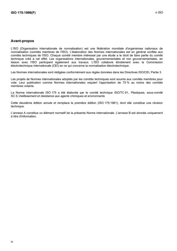 ISO 175:1999 - Plastiques -- Méthodes d'essai pour la détermination des effets de l'immersion dans des produits chimiques liquides