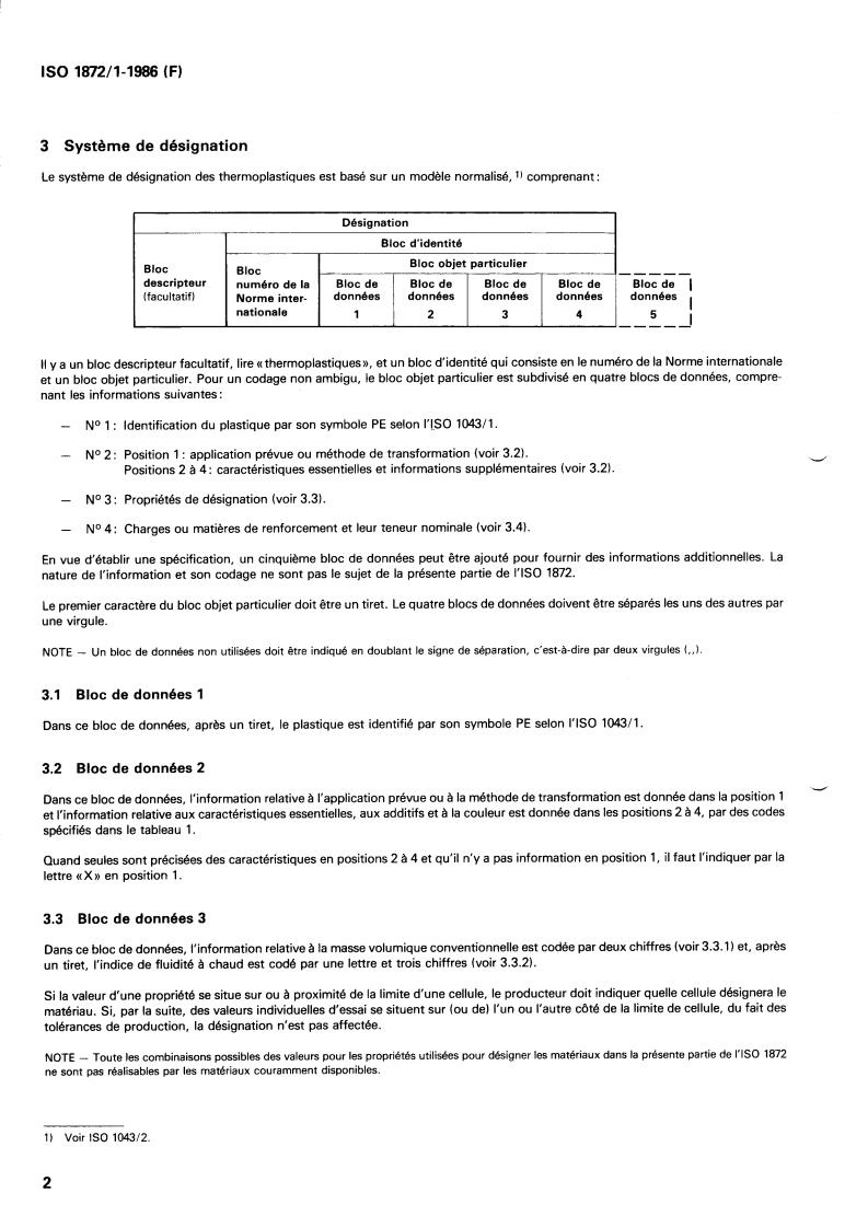 1.3 Ce système de désignation est applicable seulement aux Partie 1 : Symboles pour des polymères de base et leurs