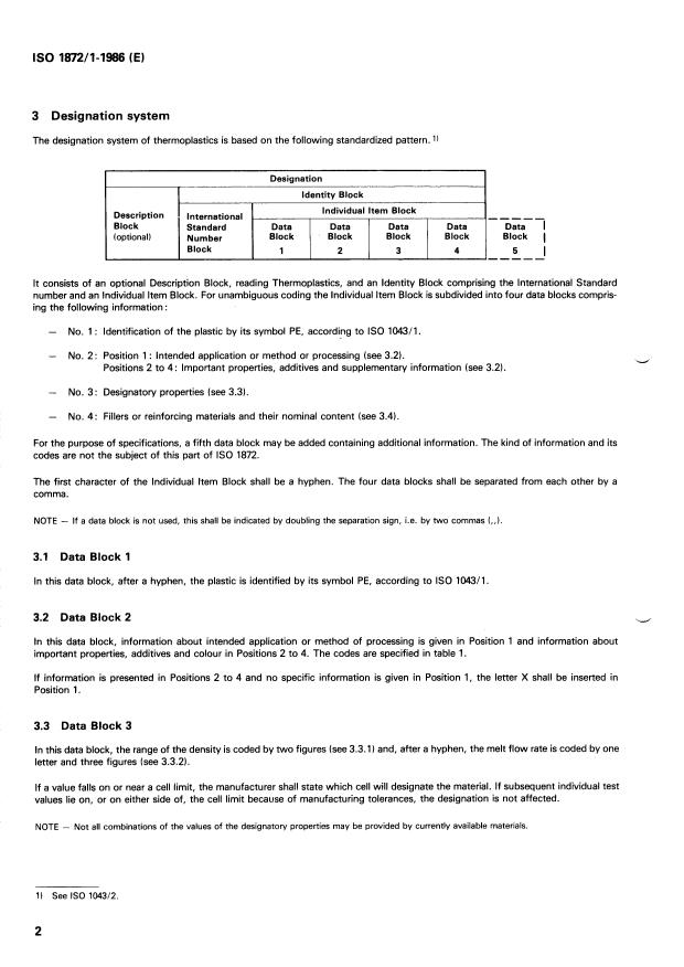 ISO 1872-1:1986 - Plastics — Polyethylene (PE) and ethylene copolymer thermoplastics — Part 1: Designation Released:9/4/1986