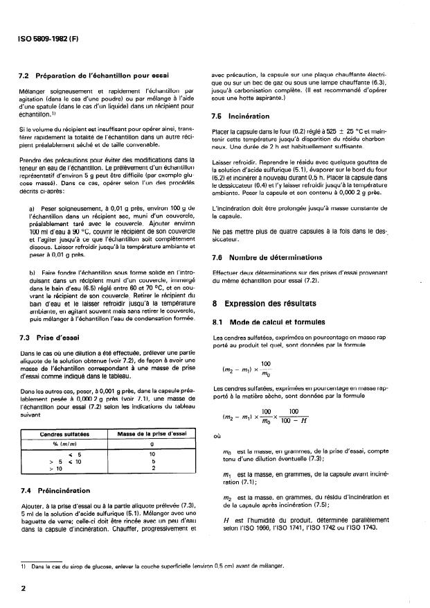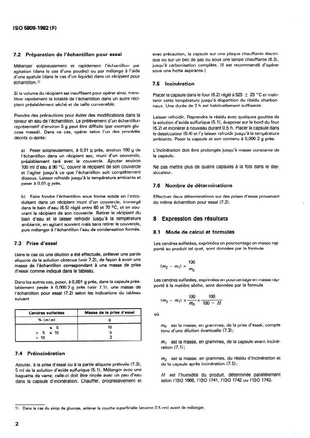 ISO 5809:1982 - Amidons, fécules et produits dérivés -- Détermination des cendres sulfatées