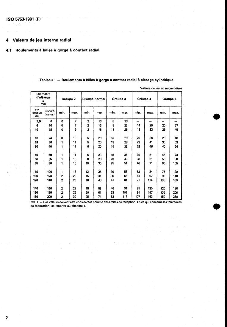 NOTE - 3s valeurs doivent être COI jérées comme des limites de récepi I. En ce qui concerne les tolérances