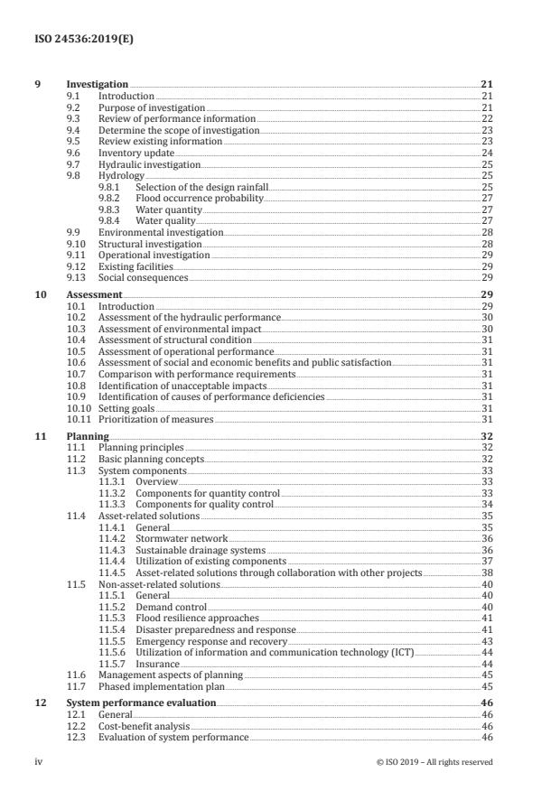 ISO 24536:2019 structures guidance across the full stormwater lifecycle. Key technical topics include: