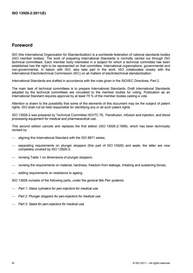 ISO 13926-2:2011 is a standard published by the International Organization for Standardization (ISO). Its full title is "Pen systems — Part 2: Plunger stoppers for pen-injectors for medical use". This standard covers: ISO 13926-2:2011 specifies the shape, dimensions, material, performance requirements and labelling of plunger stoppers for pen-injectors for medical use.
