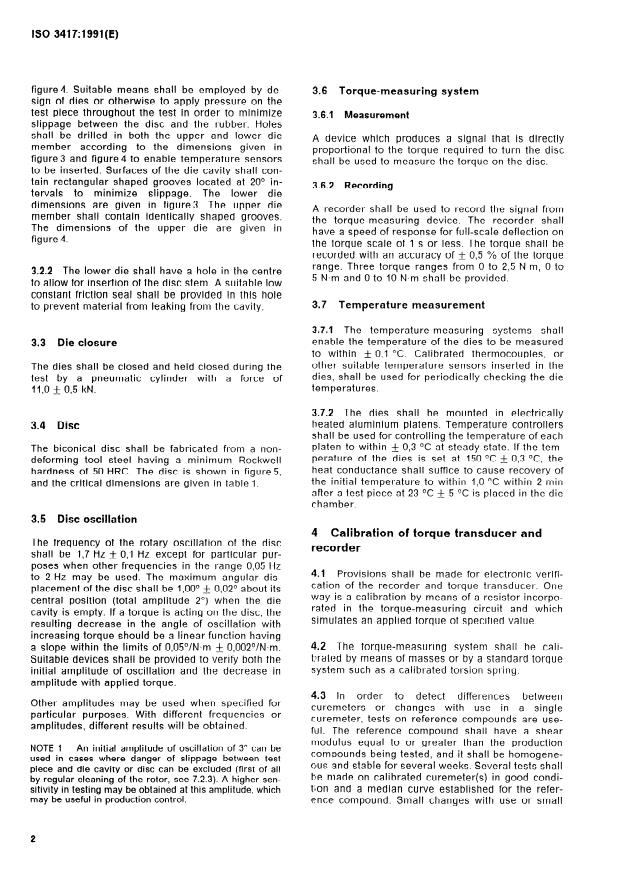 ISO 3417:1991 is a standard published by the International Organization for Standardization (ISO). Its full title is "Rubber — Measurement of vulcanization characteristics with the oscillating disc curemeter". This standard covers: Specifies a method for determining selected vulcanization characteristics of a rubber compound. This second edition cancels and replaces the first edition (1975). Annex A is for information only.