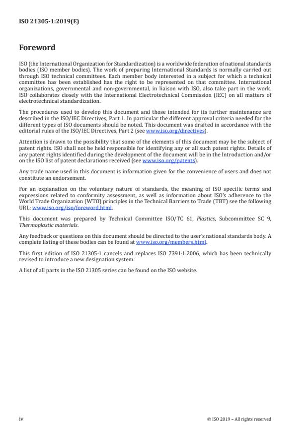 Cette première édition de l’ISO 21305-1 annule et remplace l’ISO 7391-1:2006, qui a fait l’objet d’une
