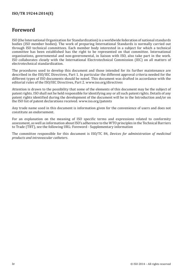 Keywords: ISO/TR 19244:2014, ISO/TC 84, transition periods, grandfathering, medical devices, administration of medicinal products, catheters, design verification, notified body, risk assessment.