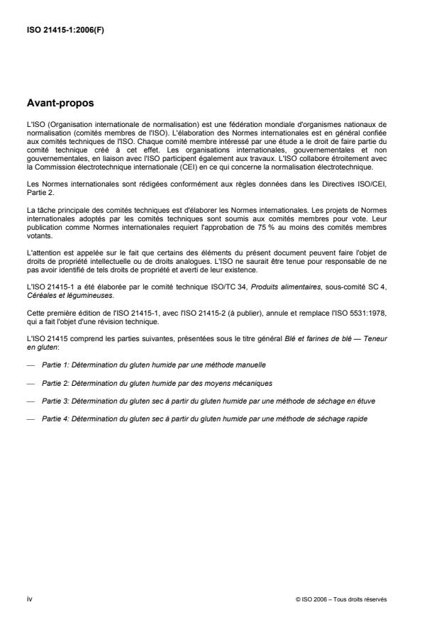 - Refer to the full ISO 21415-1:2006 text for complete procedural details, annexes (gluten press design, grinding), and reporting requirements.