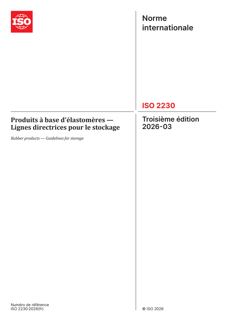 ISO 2230:2026 - Produits à base d'élastomères — Lignes directrices pour le stockage