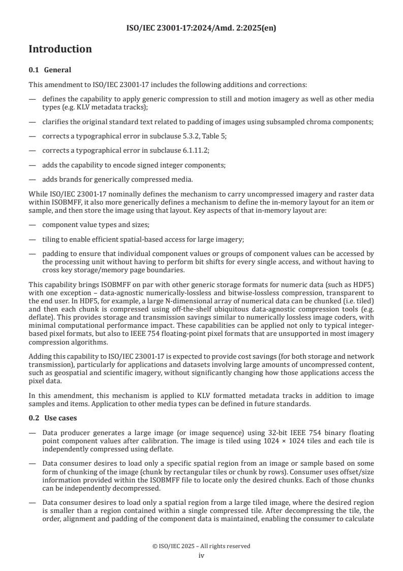 ISO/IEC 23001-17:2024/Amd 2:2025 - Information technology — MPEG systems technologies — Part 17: Carriage of uncompressed video and images in ISO base media file format — Amendment 2: Generic compression for samples and items in ISOBMFF Released:13. 08. 2025