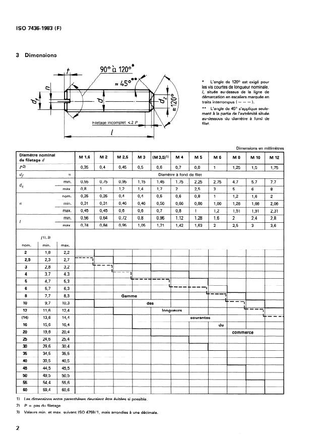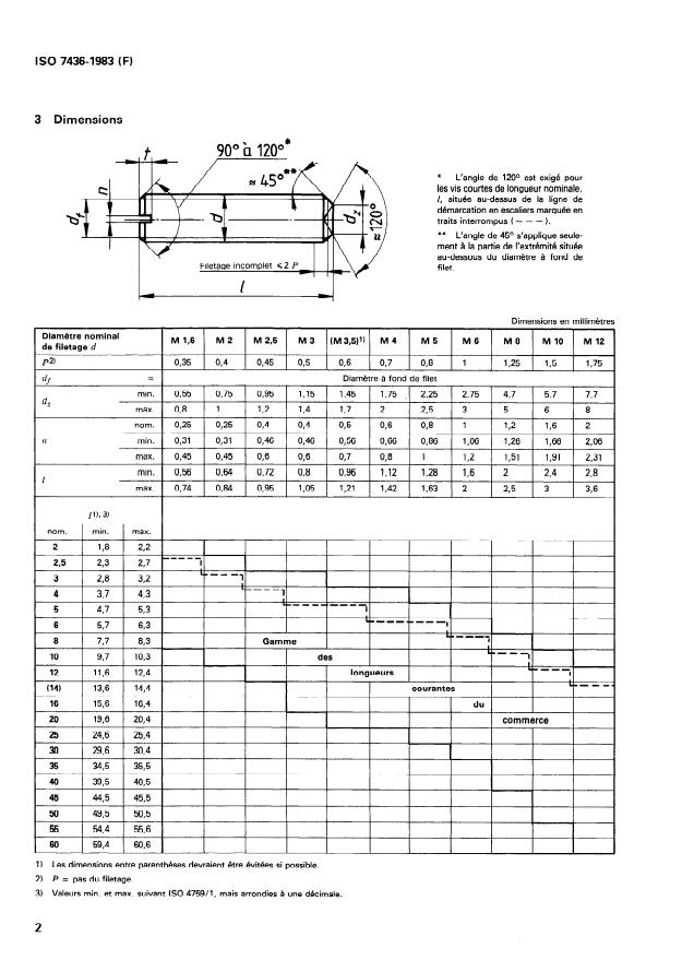 La présente Norme internationale spécifie les caractéristiques des vis sans tête, fendues, à bout cuvette, de diamètre nominal de filetage M 1,6 à M 12 inclus et de grade A. Si d'autres spécifications sont requises, il est recommandé de les choisir dans les Normes internationales existantes, par exemple ISO 261, ISO 888, ISO 898, ISO 965, ISO 3506, 4759/1.