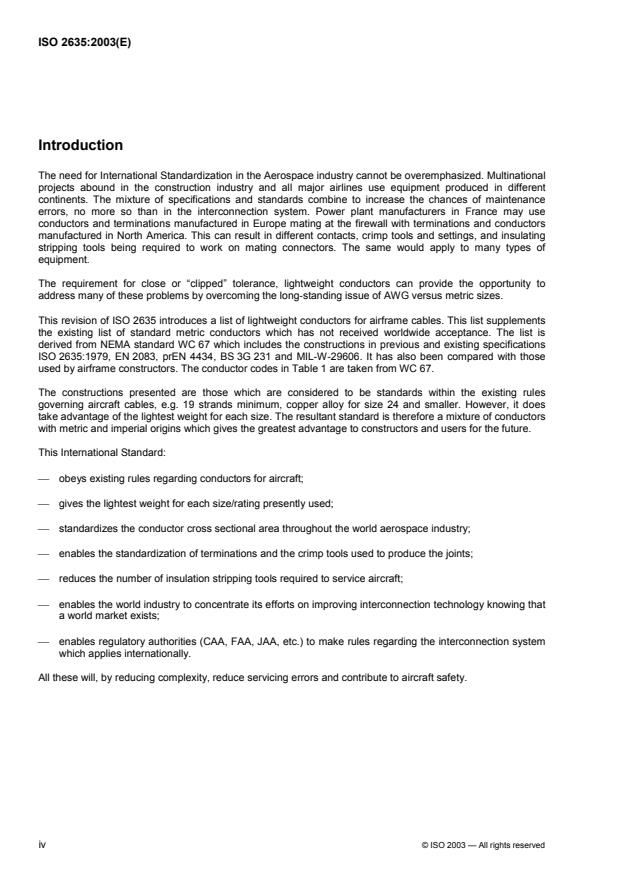 Keywords: ISO 2635:2003, aircraft conductors, aerospace conductors, multi‑strand conductors, conductor dimensions, conductor resistance, lightweight conductors, WWG, aircraft electrical cables.