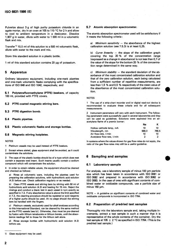ISO 6831:1986 - Iron ores — Determination of sodium and/or potassium contents — Flame atomic absorption spectrometric method Released:9/25/1986
