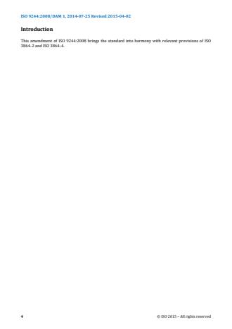 L’ISO 9244:2008/Amd. 1 met l’ISO 9244 en harmonie avec les dispositions de l’ISO 3864-2 et de