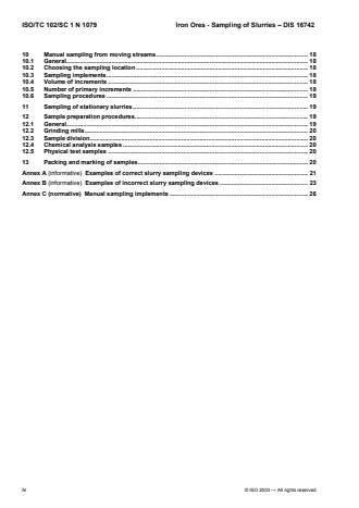 ISO 16742:2014 sets out the basic methods for sampling fine iron ore of nominal top size The procedures described in ISO 16742:2014 apply to sampling of iron ore that is transported in moving streams as a slurry. These streams can fall freely or be confined in pipes, launders, chutes, spirals, or similar channels.