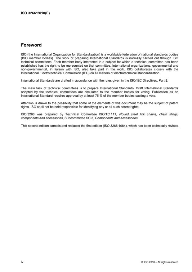 ISO 3266:2010 is classified under the following ICS (International Classification for Standards) categories: 53.020.30 - Accessories for lifting equipment. The ICS classification helps identify the subject area and facilitates finding related standards.