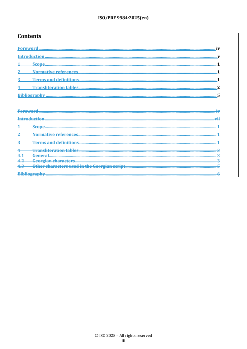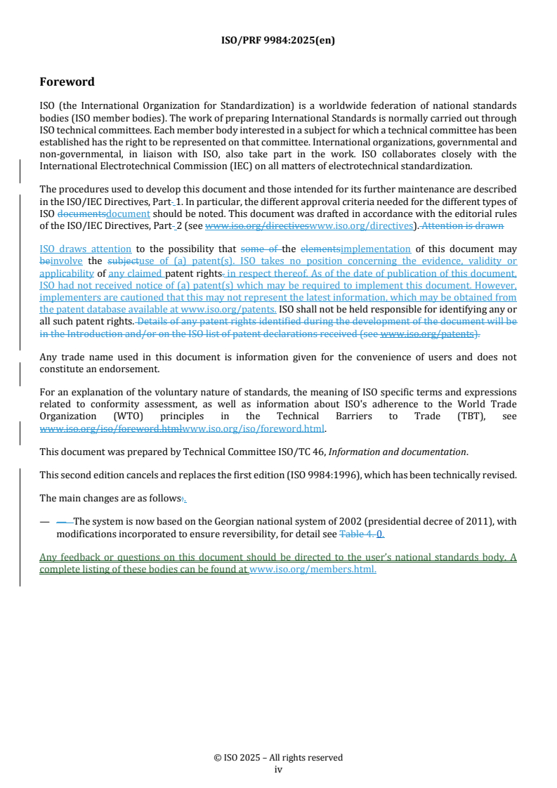 REDLINE ISO/PRF 9984 - Information and documentation — Transliteration of Georgian characters into Latin characters Released:6. 11. 2025
