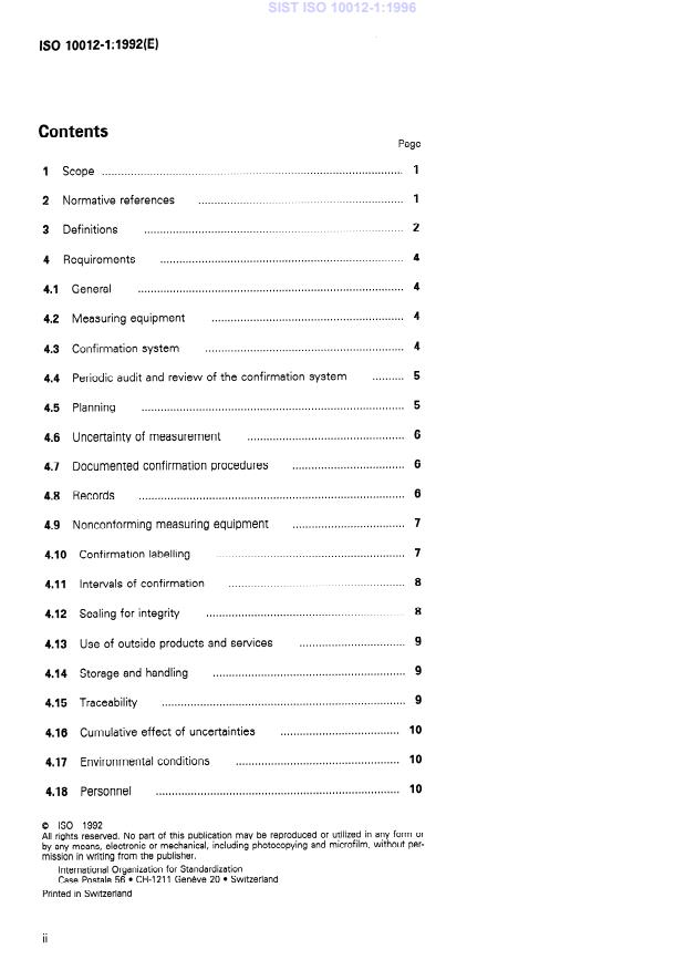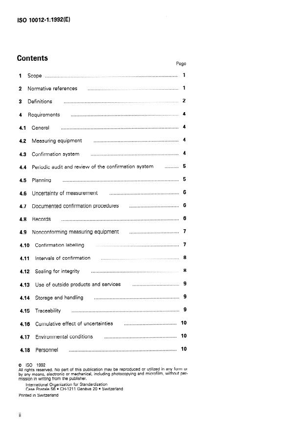 ISO 10012-1:1992 is a standard published by the International Organization for Standardization (ISO). Its full title is "Quality assurance requirements for measuring equipment — Part 1: Metrological confirmation system for measuring equipment". This standard covers: Applies to: testing laboratories, including those providing a calibration service; suppliers of products or services; other organizations where measurement is used to demonstrate compliance with specified requirements.