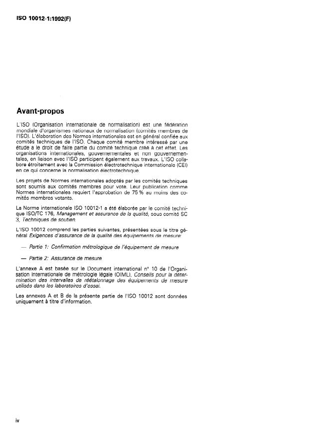 ISO 10012-1:1992 - Exigences d'assurance de la qualité des équipements de mesure