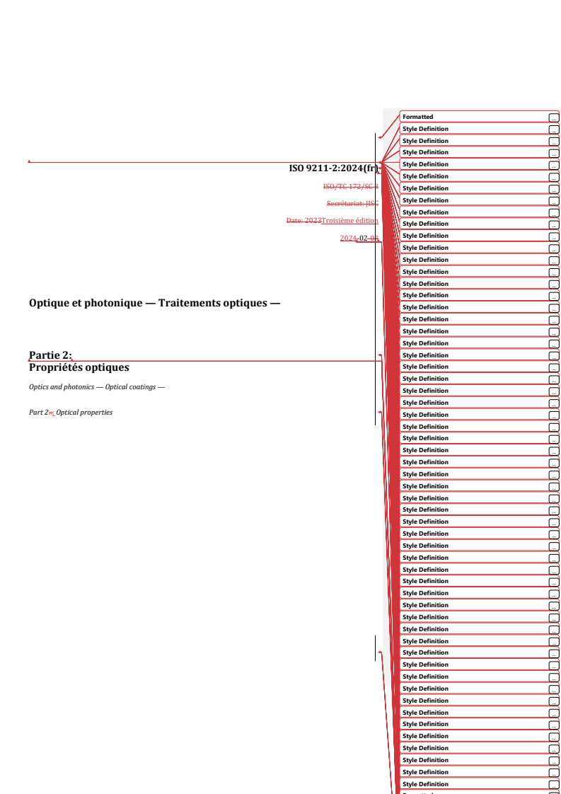 REDLINE ISO 9211-2:2024 - Optique et photonique — Traitements optiques — Partie 2: Propriétés optiques Released:3/6/2024