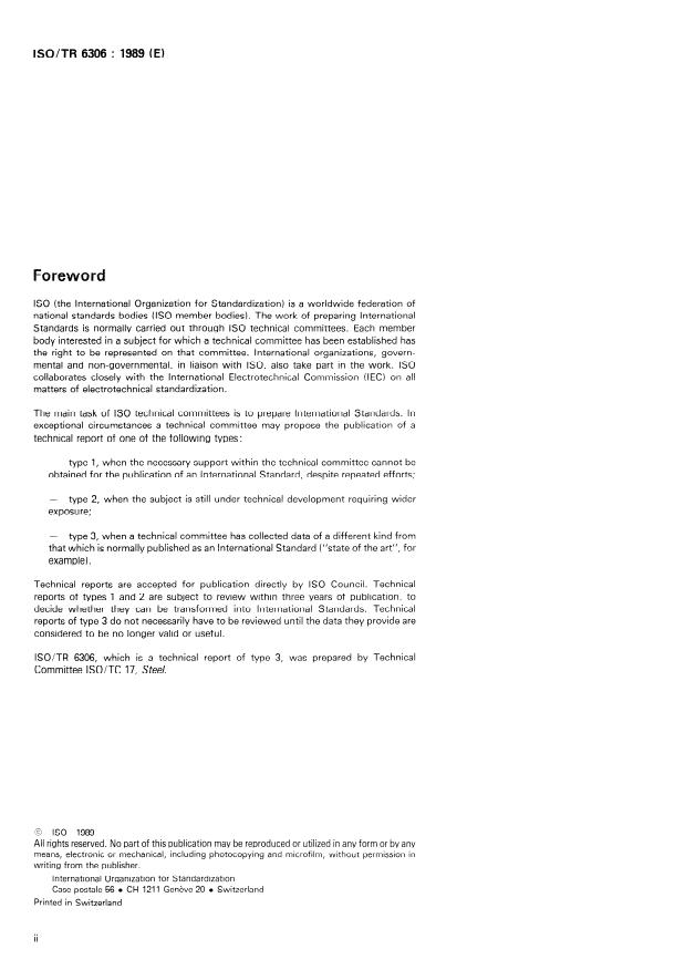 lSO/TR 6306, which is a technical report sf type 3, was prepared by Technical