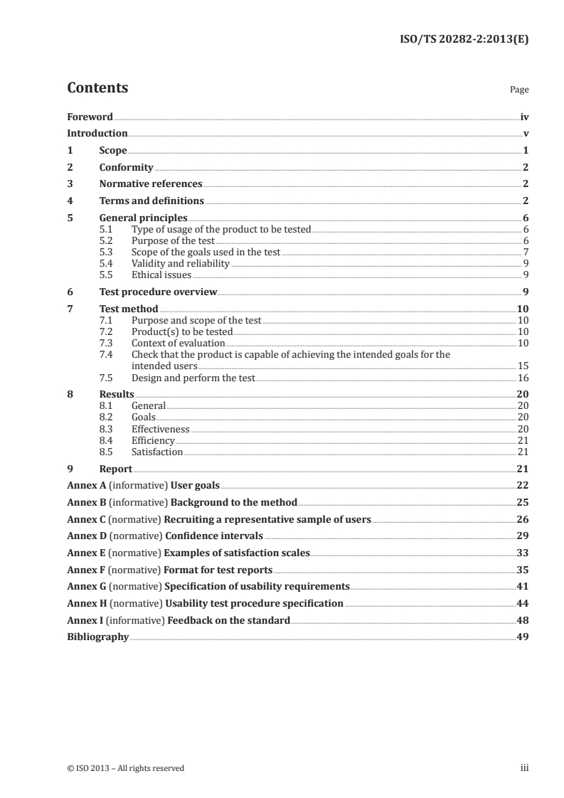 - Statistical and reporting guidance: Includes guidance on recruiting representative samples, confidence intervals (Annexes C and D), satisfaction scales (Annex E), and a format for test reports (Annex F).