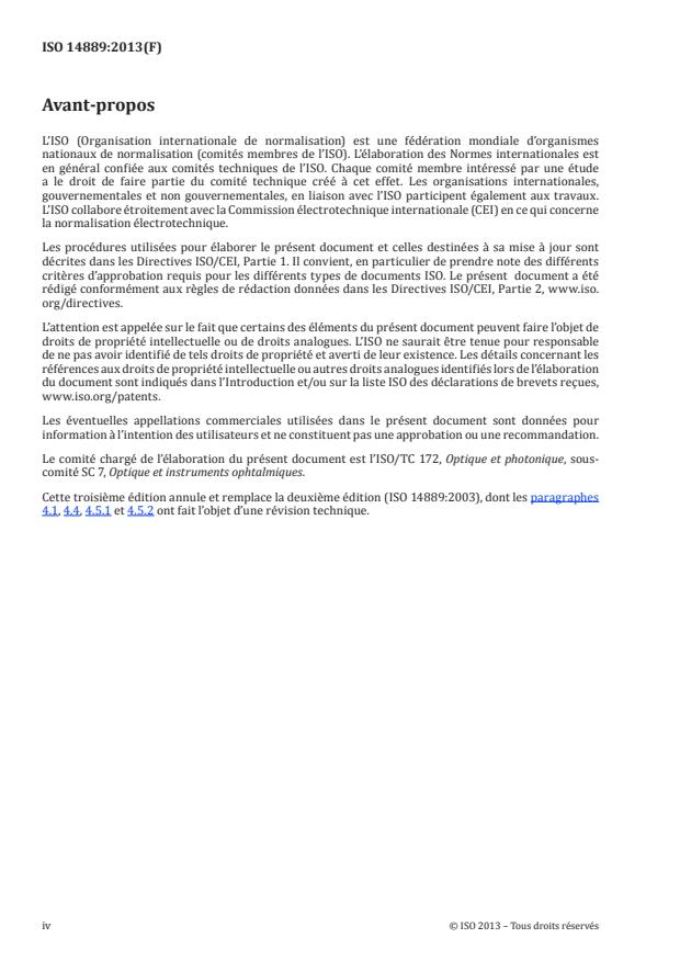 ISO 14889:2013 specifies fundamental requirements for uncut finished spectacle lenses. It is not applicable to protective spectacle lenses. ISO 14889:2013 takes precedence over the corresponding requirements of other standards, if differences exist.