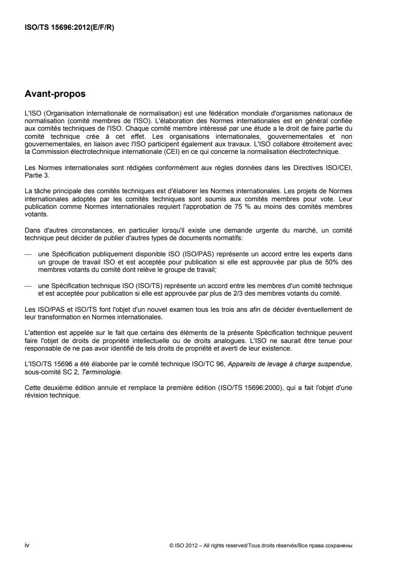 Keywords: ISO/TS 15696:2012, crane terminology, equivalent terms English French Russian, crane standards, ISO TC 96, harmonization of terminology.