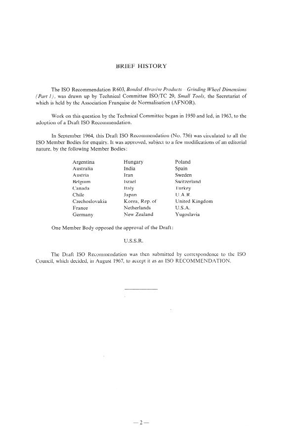 In September 1964, this Draft IS0 Recommendation (No. 736) was circulated to all the