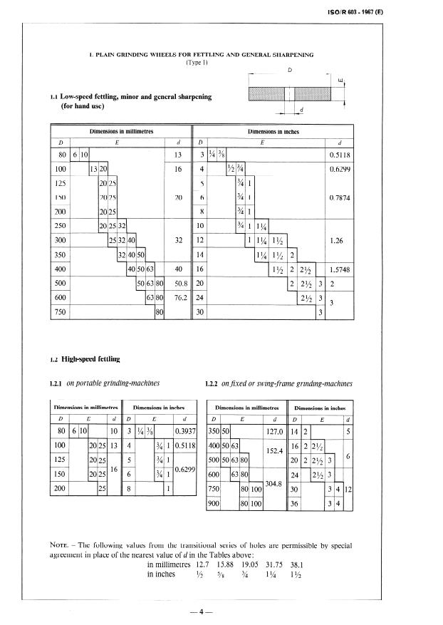 The IS0 Recommendation R603, Bonded Abrasive Products -Grinding- Wheel Dimensions