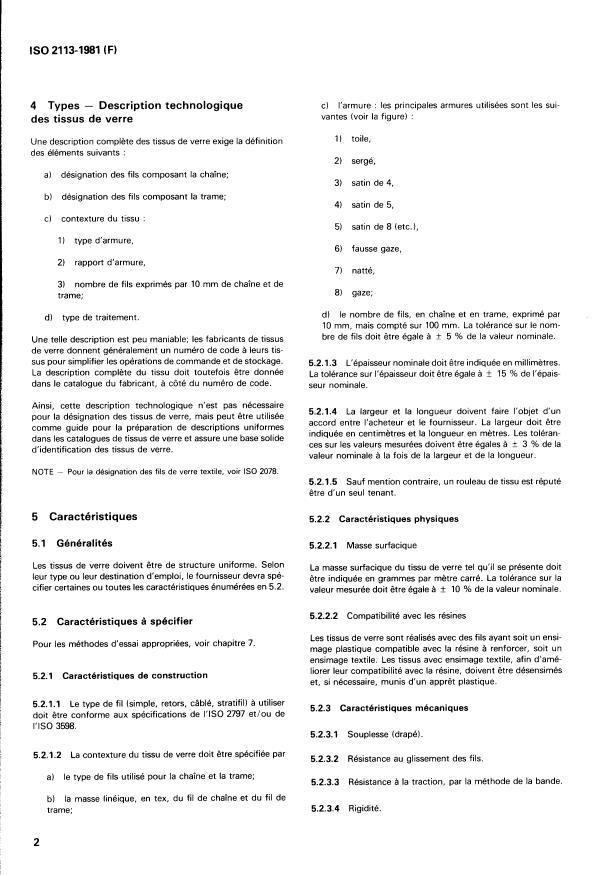 IS0 3598, Fils à base de verre textile - Base de spécification. armure : Désignation du mode d'entrecroisement des