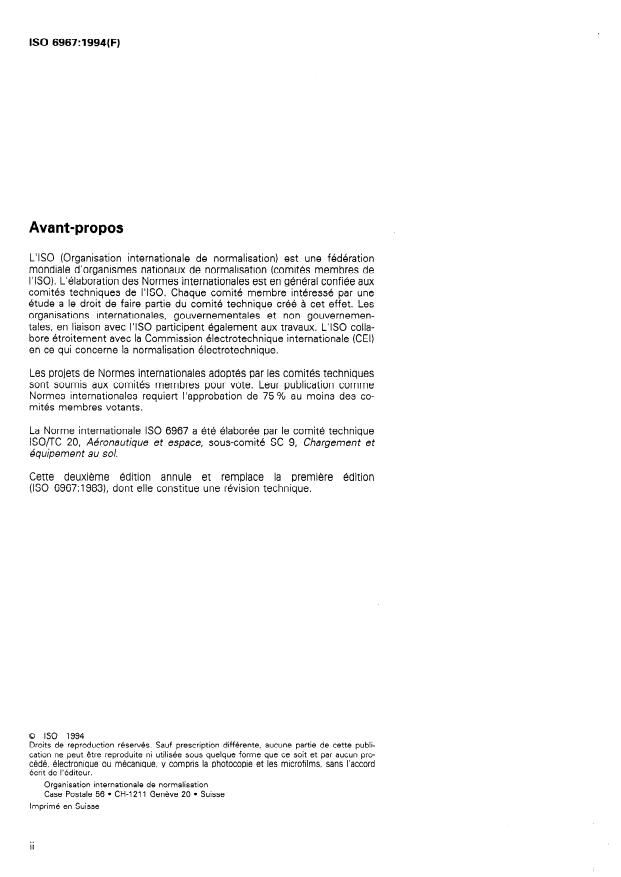 ISO 6967:1994 - Aéronefs -- Chargeurs de conteneurs et palettes au pont principal d'aéronefs gros porteurs -- Exigences fonctionnelles