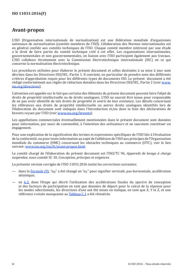 ISO 11031:2016 - Appareils de levage à charge suspendue -- Principes pour une conception résistante à la sismicité
