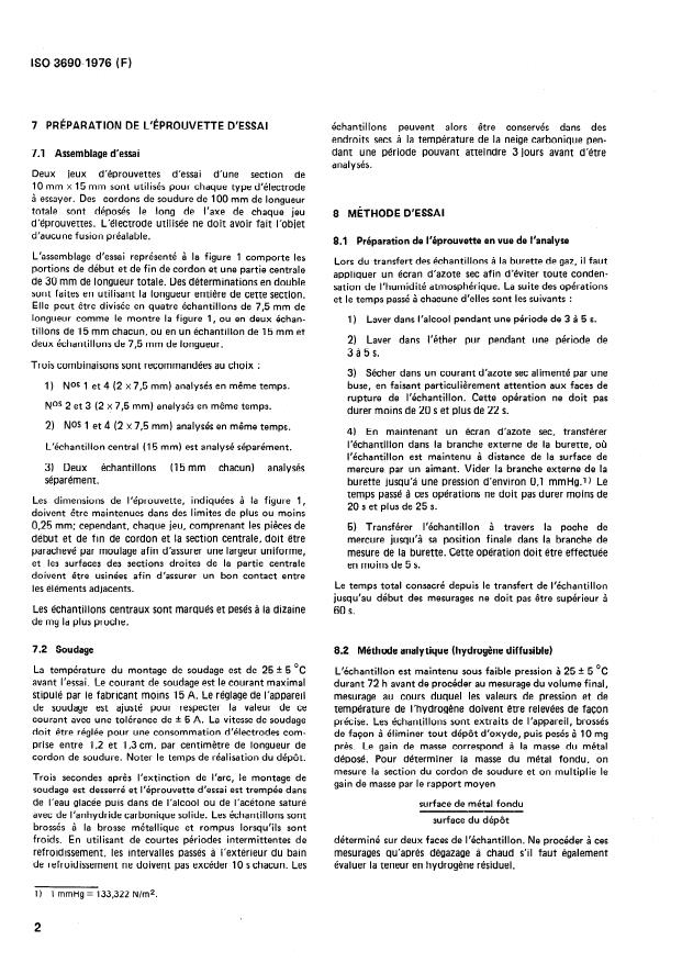 ISO 3690:1977 - Soudage -- Détermination de l'hydrogene dans le métal fondu en provenance des électrodes enrobées pour le soudage des aciers non alliés ou faiblement alliés