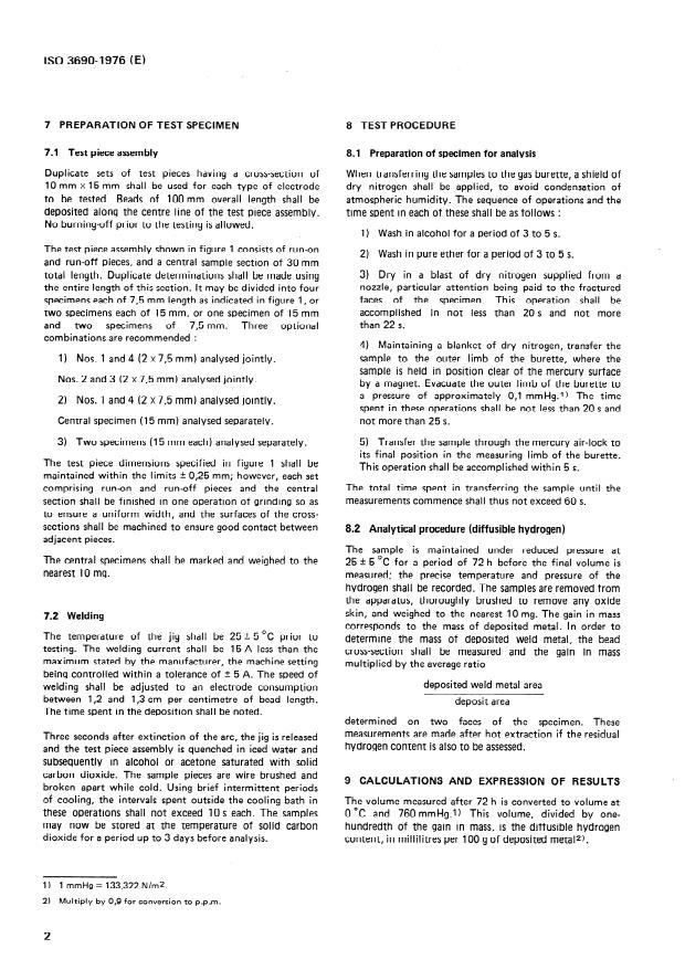 ISO 3690:1977 - Welding -- Determination of hydrogen in deposited weld metal arising from the use of covered electrodes for welding mild and low alloy steels