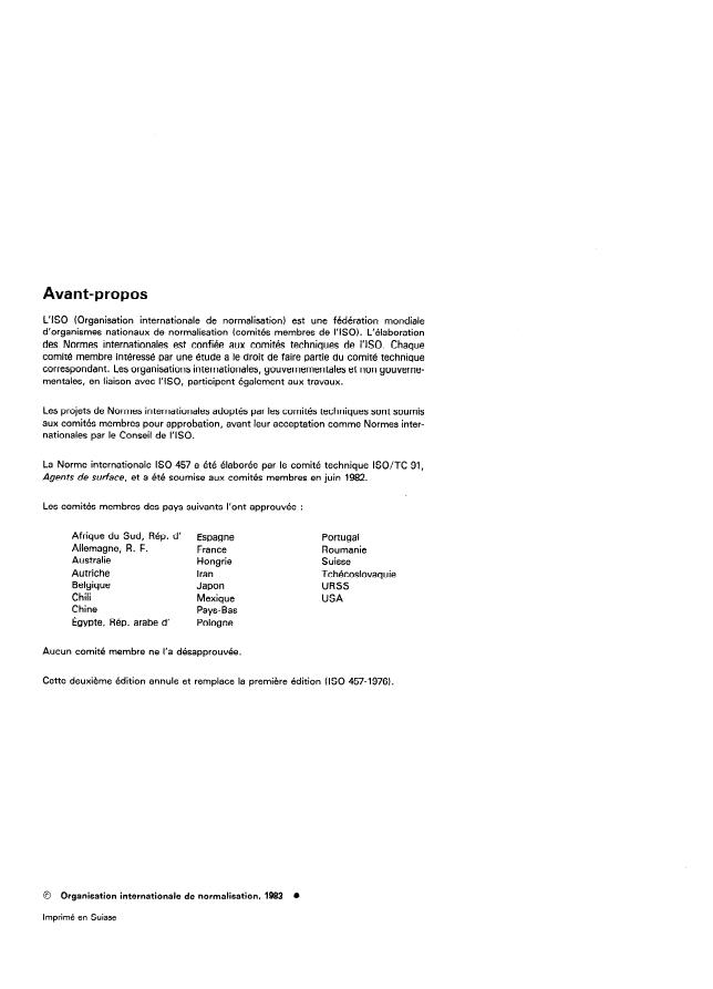 Cette deuxieme edition annule et remplace la premiere edition (IS0 457-1976).